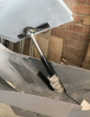 Mocking up top actuator mount into canopy using fibreglass proforma and 4mm thick steel sheet