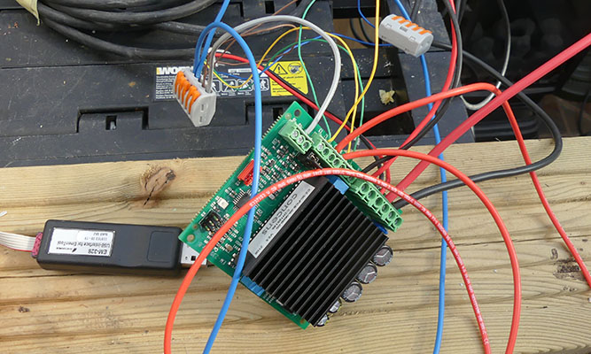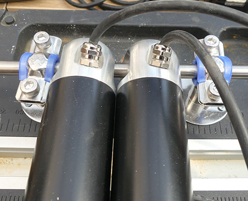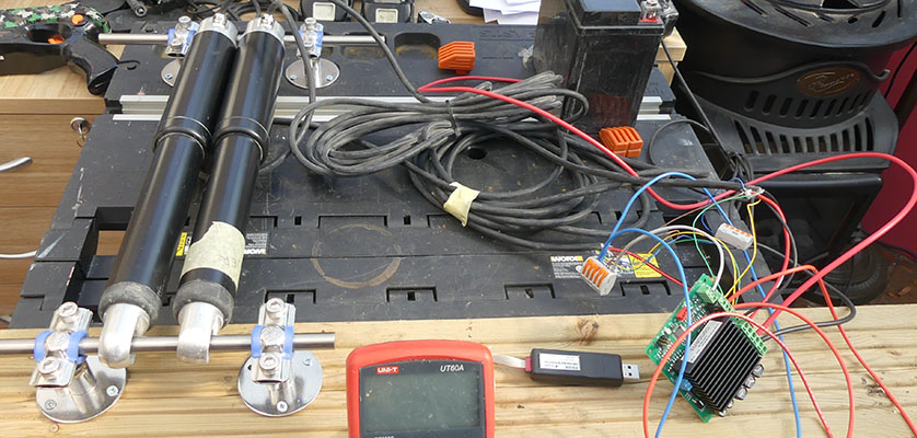 Constructed Bench set up ready for syncing dual actuators with electronic control unit. The two units cannot go out of sync while lifting the Bug canopy.