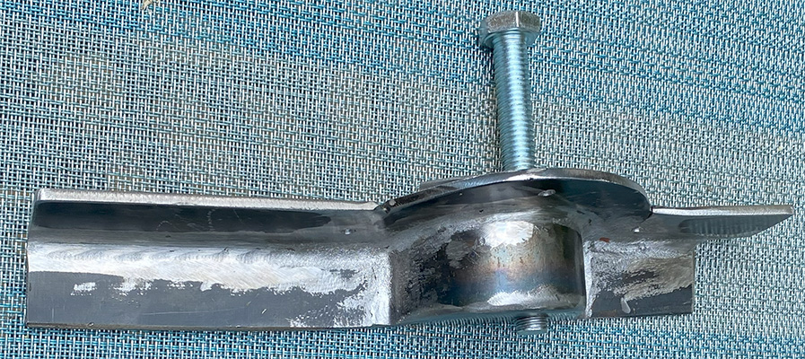Actuator bottom bracket now mocked up in 4mm steel sheet. It is held together with filler ready to be welded