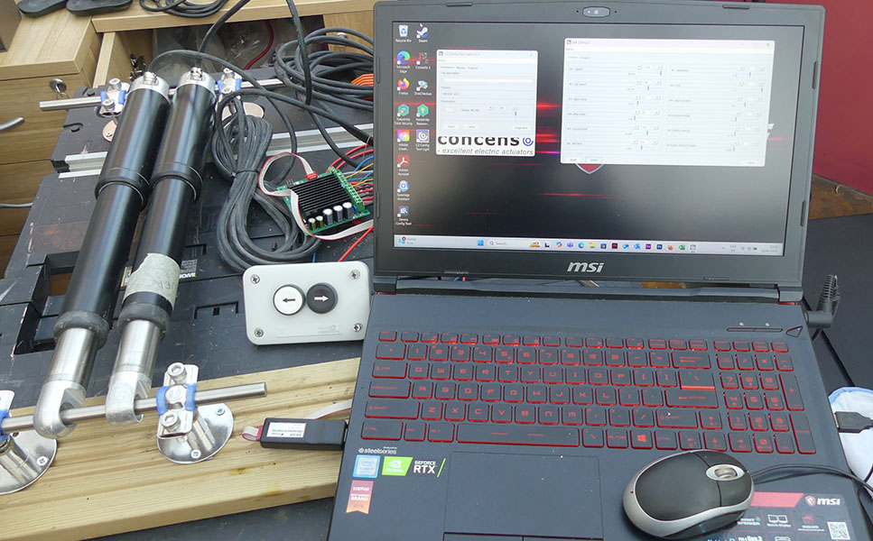 Used a laptop with a USB dongle attached to connect to the C2 controller -I then used the supplied software to program both linked actuators together to wokk in sync.