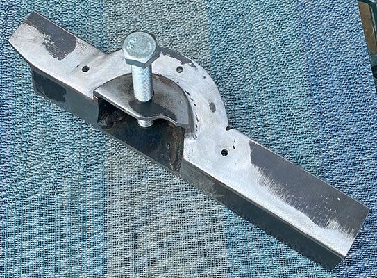 2nd canopy actuator bracket mocked up for welding - note the fibre glass template used to get the tricky angles correct